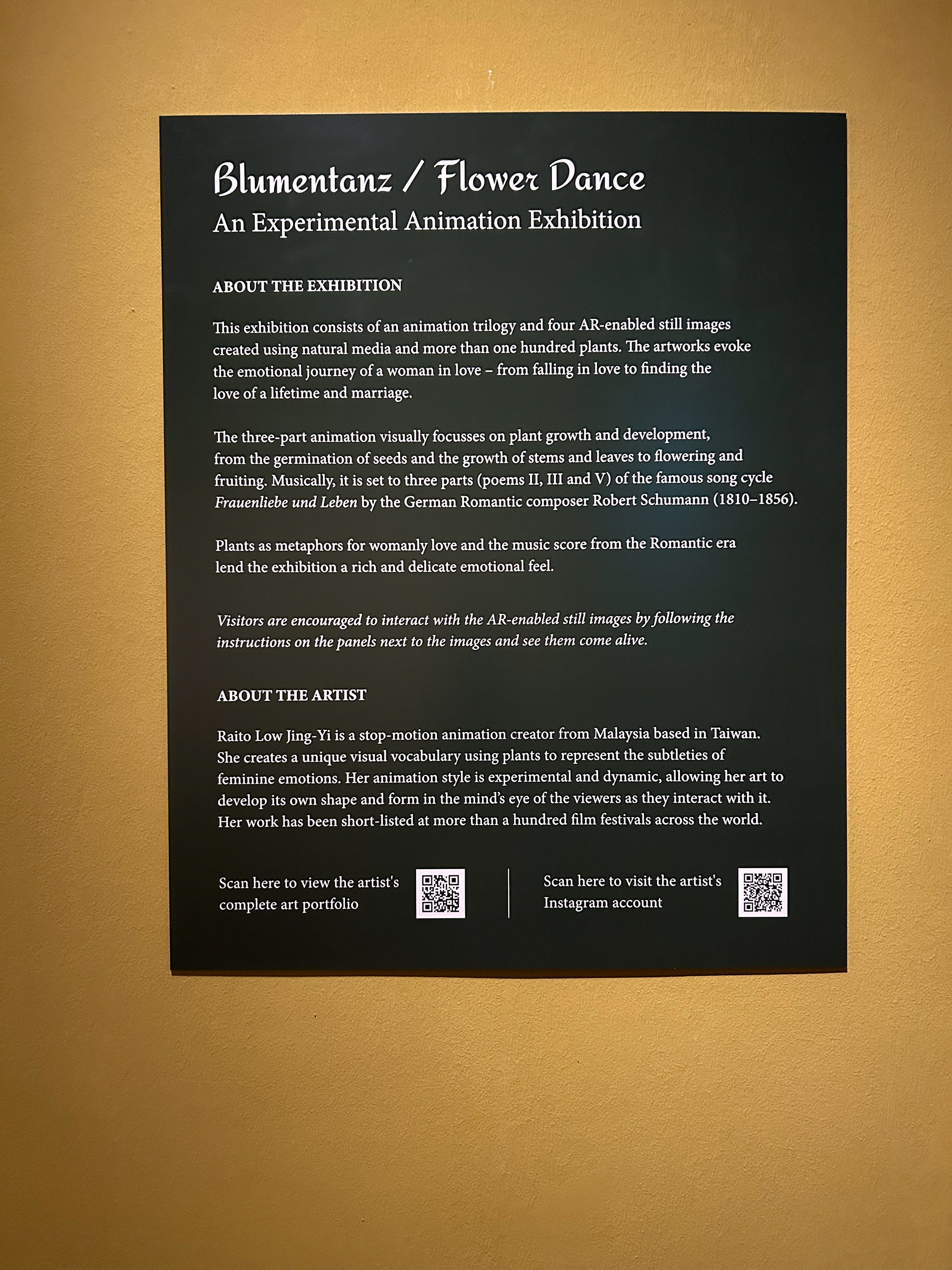 很開心告訴大家我的植物系列作品《女性愛情三部曲:花簇在婆娑中綻放》目前正在新加坡植物園的植物藝術畫廊中展出,對一個植物錄像來説真的是一個最適合她的展覽空間了!經過超過半年的討論,第一次遠端執行展覽製作,謝謝陳培育教授以及所有參與的新加坡植物園、策展團隊Pico的同仁們,特別是一路給予協助的Ratika以及Shiya,謝謝你們!展出時間爲期一年,歡迎各位新加坡的朋友來逛逛這個擁有165年歷史的被聯合國教科文組織列為世界遺產的熱帶花園,還可以來吹吹冷氣看看動畫玩玩AR哦!