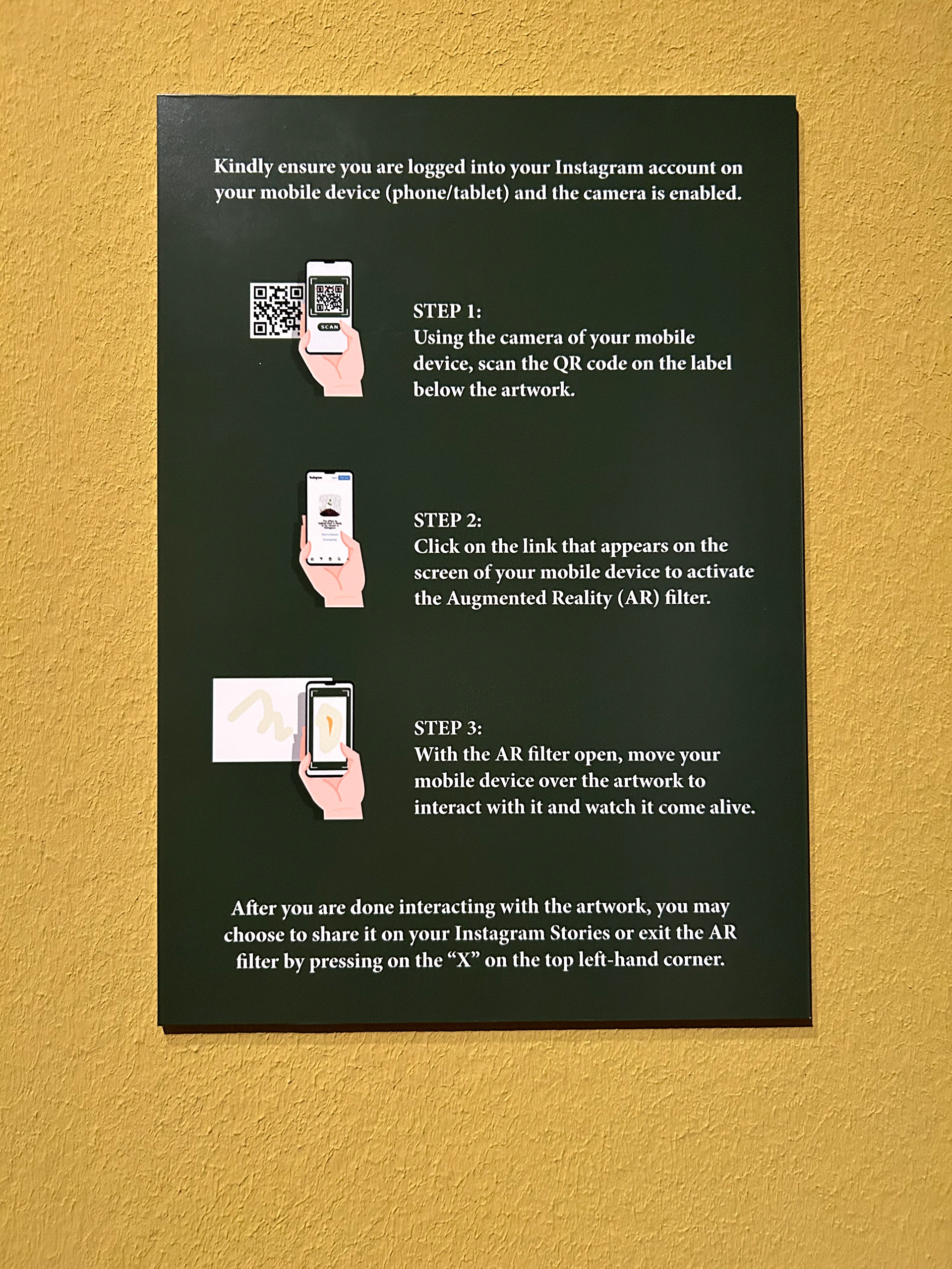 Visitors are encouraged to interact with the AR-enabled still images by following the instructions on the panel next to the images and see them come alive.