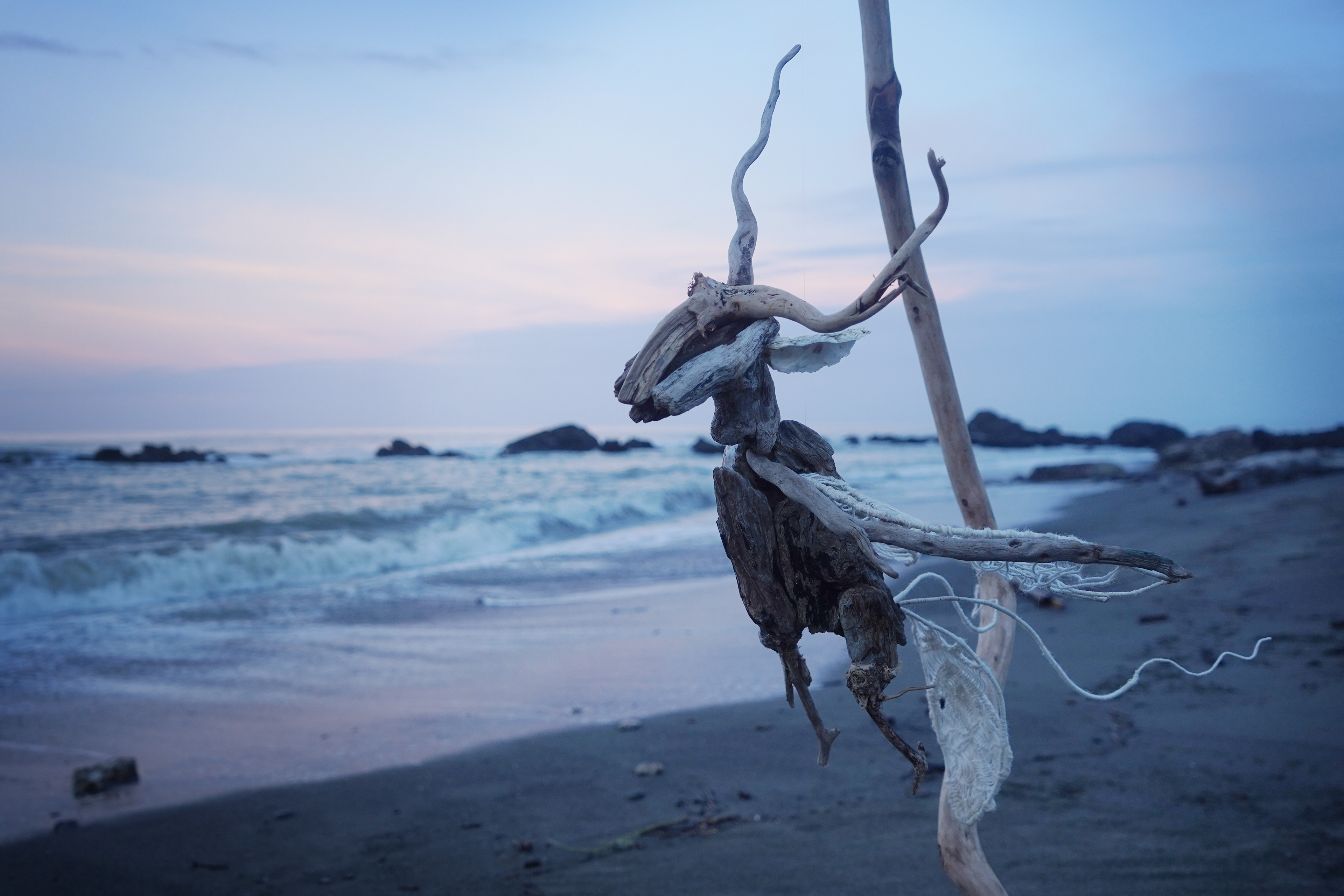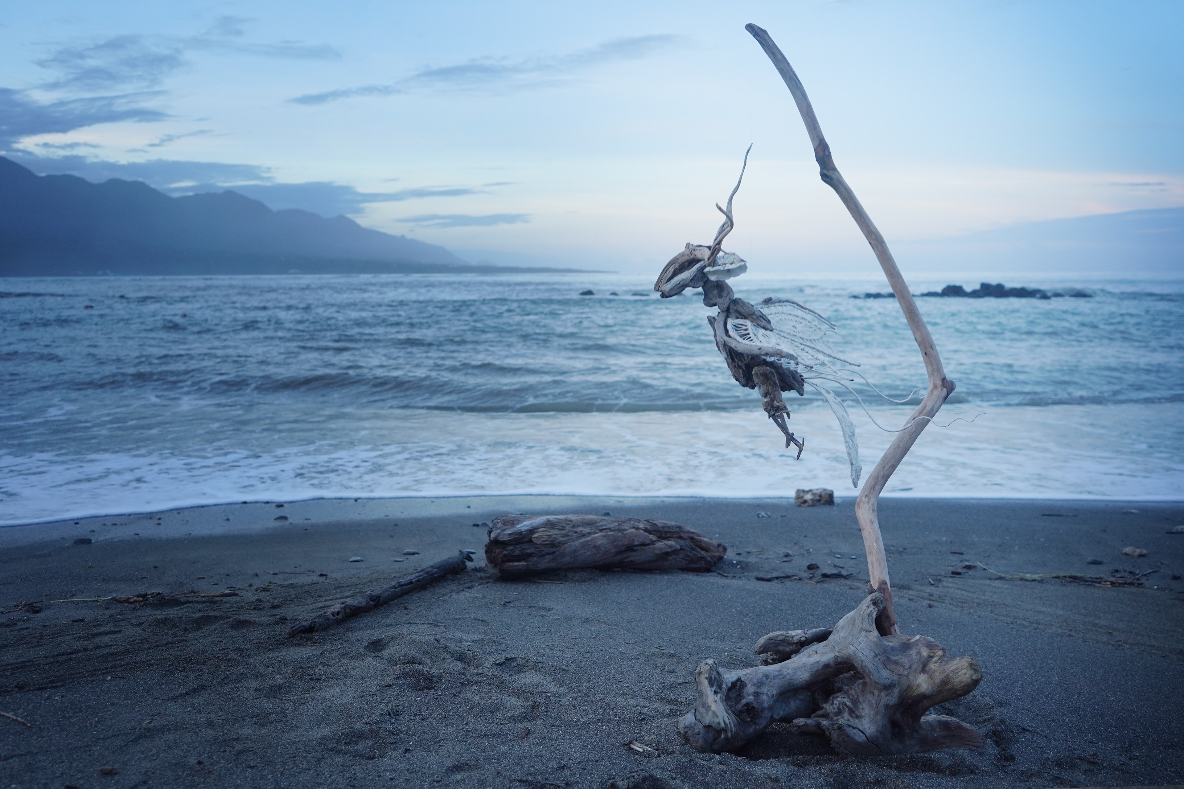 The flexible structure of aluminum and rope enables a fluid, rhythmic motion, simulating a nocturnal presence. The ramie-woven wings act as "Spiritual Eyes," bridging the gap between the seen and unseen worlds. In this deep space of perception, the guardian awakens to protect the spirit of the mountain and the collective consciousness of the tribe.