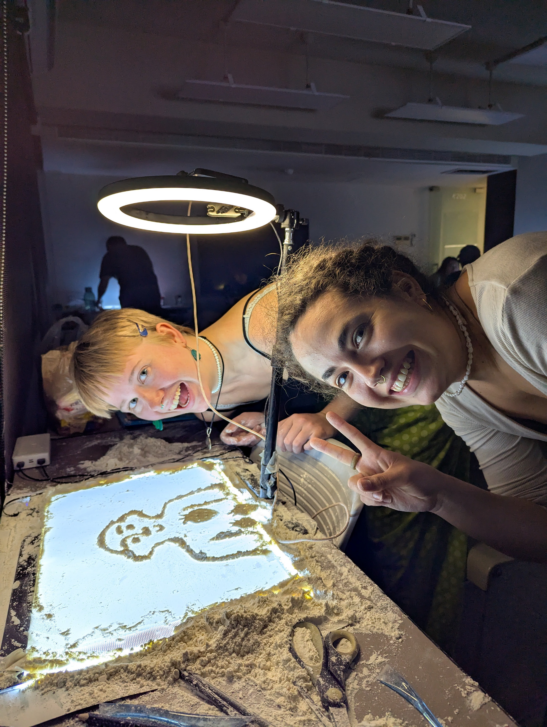 什麼是沙動畫? 以沙子為顏料、手指為畫筆,在透光玻璃燈箱上進行的停格動畫。創作者透過抹、推、撒、勾等手部動作,讓沙粒在背光的映照下,構築出千變萬化的黑白輪廓與細膩漸層。