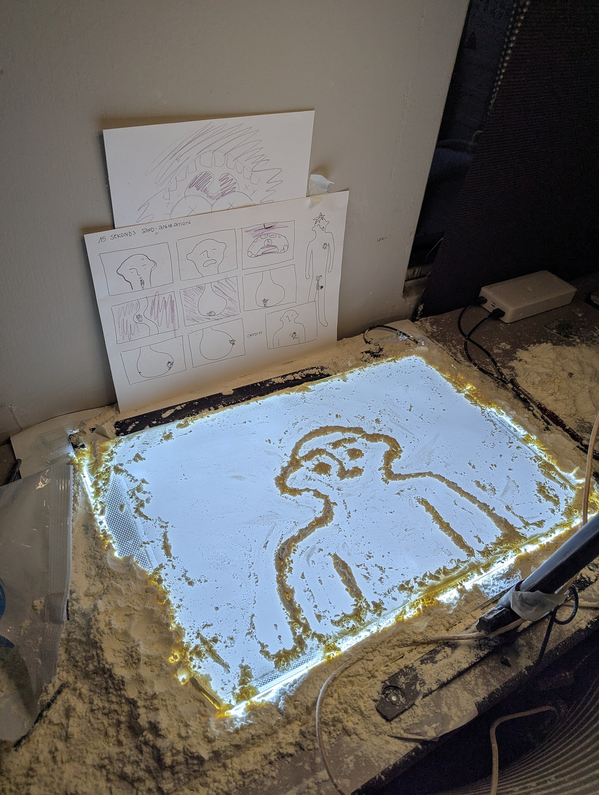 What is Sand Animation? Stop-motion animation that uses sand as paint and fingers as brushes on an illuminated glass lightbox. Through sweeping, pushing, sprinkling, and drawing, creators shape the sand against the backlight to construct ever-changing silhouettes and delicate gradients.